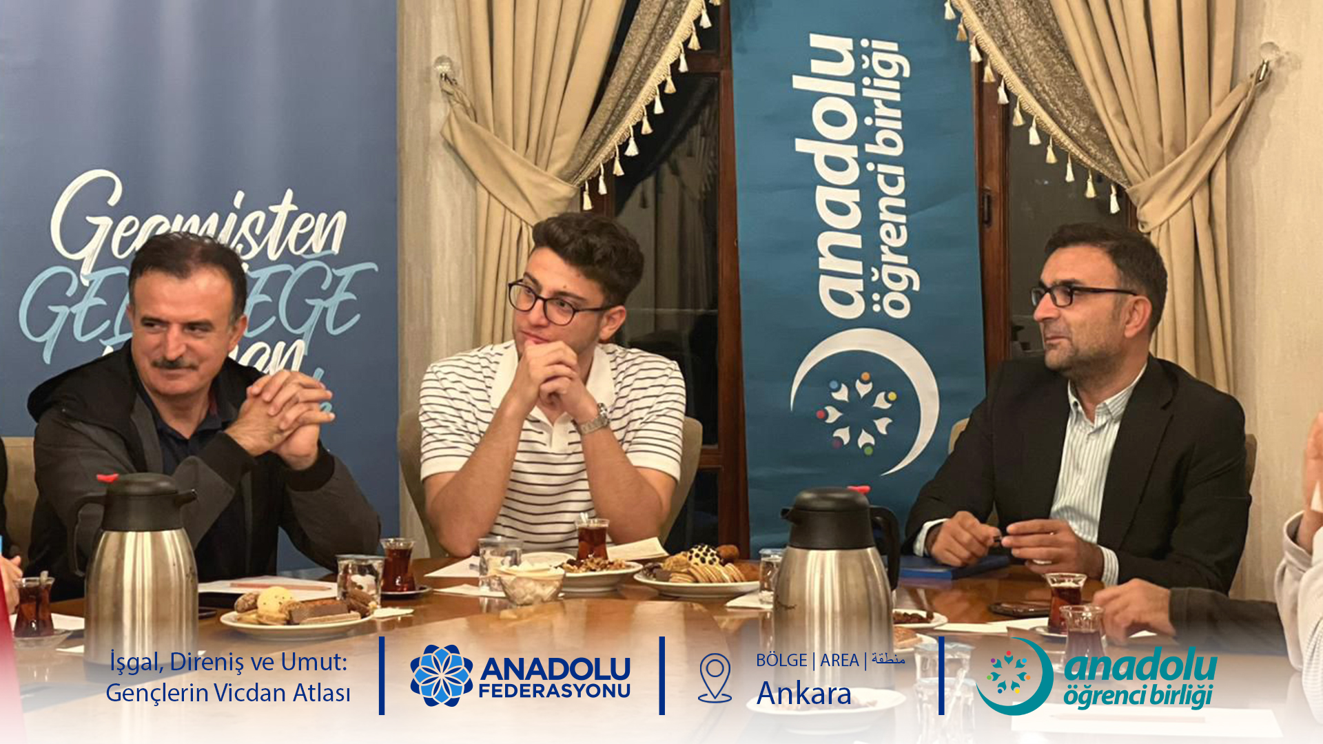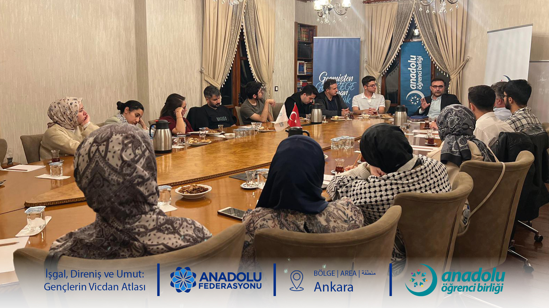 AÖB (Anadolu Öğrenci Birliği) Ankara Temsilciliği 7 Ekim Salı günü Müzakere Masası programı kapsamında “İşgal, Direniş ve Umut: Gençlerin Vicdan Atlası” üst başlığıyla bir buluşma düzenledi.