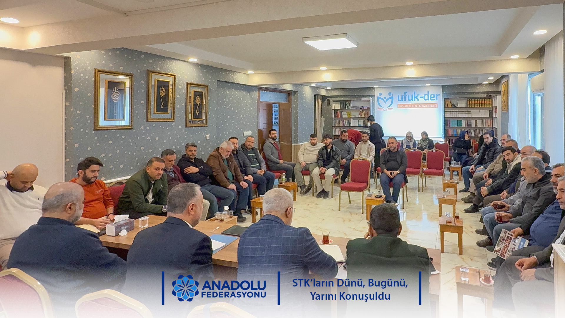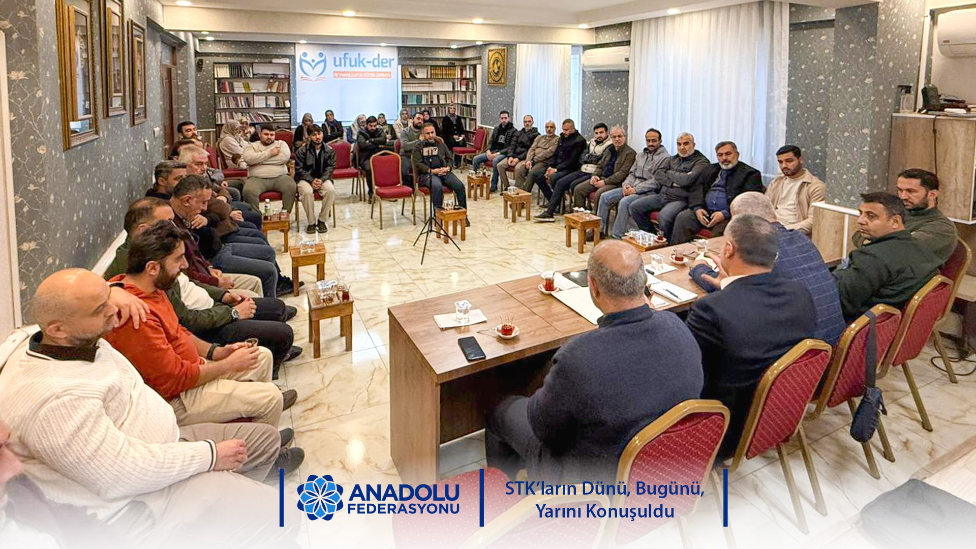 Sivil toplumun geçmişten bugüne taşıdığı birikim ve geleceğe dair sorumlulukları, Anadolu Federasyonu üye kuruluşlarından Ufuk Eğitim Derneği’nde gerçekleştirilen programla ele alındı. “STK’ların Dünü, Bugünü, Yarını” başlığıyla düzenlenen programa konuşmacı olarak Anadolu Federasyonu Yönetim Kurulu Başkanı Turgay Aldemir katıldı. Programda, teknolojik gelişmelerin hız kazandığı çağımızda insanî değerlerin nasıl korunabileceği, sivil toplumun bu noktadaki rolü ve sorumlulukları kapsamlı bir şekilde değerlendirildi.