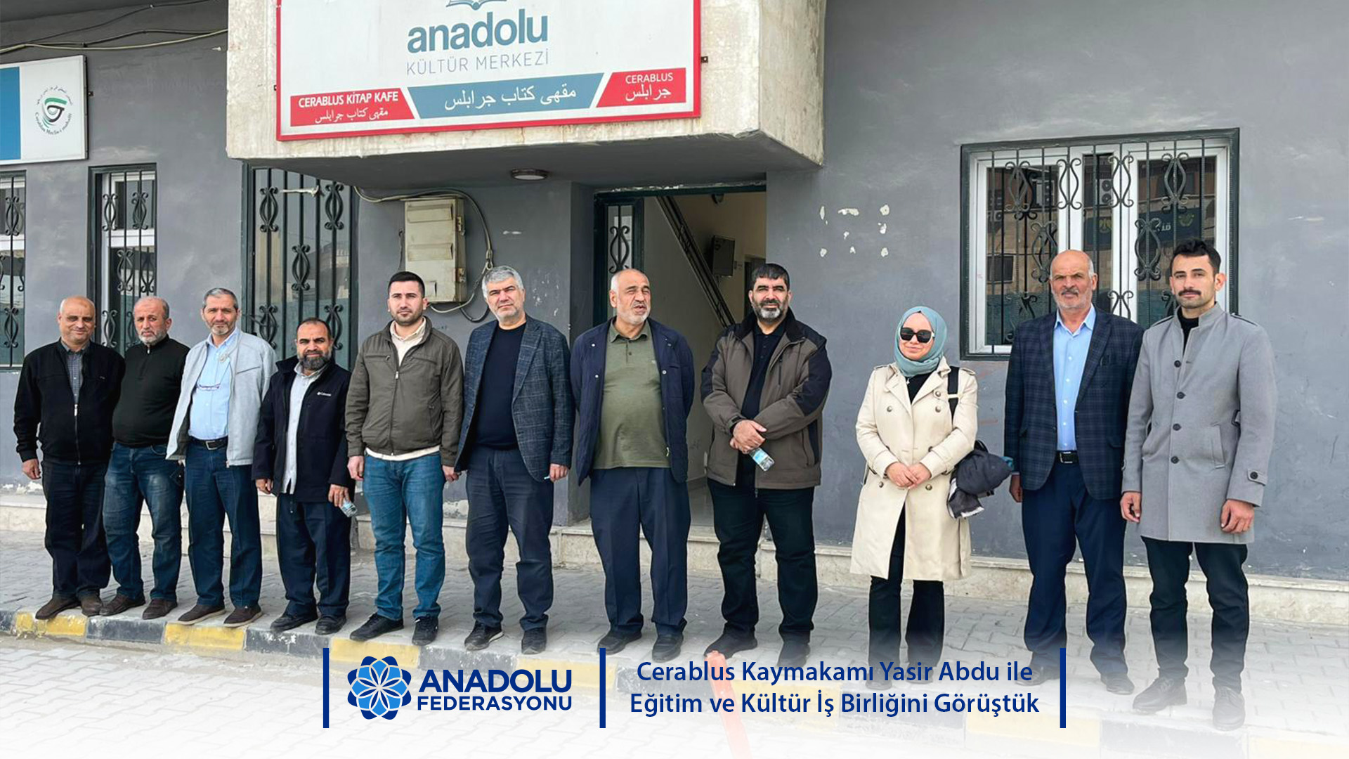 Anadolu Federasyonu bünyesinde faaliyet gösteren Bülbülzade Vakfı ve NEDDER heyeti Cerablus Kaymakamı Yasir Abdu’yu ziyaret ederek bölgedeki eğitim projelerini ve Cerablus Anadolu Kültür Merkezi’ndeki kültürel çalışmaları yerinde inceledi.