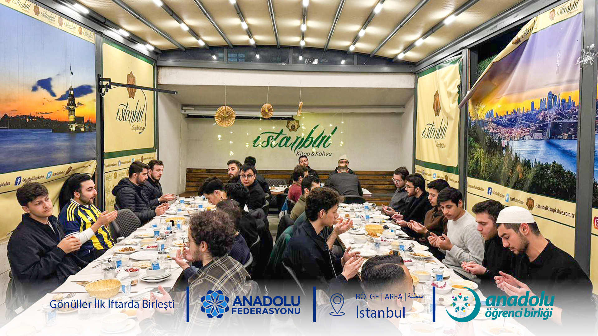 Ramazan ayının beraberinde getirdiği kardeşlik ve paylaşma ruhunu merkeze alan Anadolu Öğrenci Birliği, yılın ilk iftar programını İstanbul Kitap Kahve’de gerçekleştirdi. Gençlerimizin yoğun katılımıyla gerçekleşen organizasyon, sadece bir yemek programı olmanın ötesinde, birliğimizin ve kardeşliğimizin somut bir nişanesine dönüştü. Programın en anlamlı yanı, hazırlık sürecinin tamamen gönüllü öğrencilerimiz tarafından yürütülmesiydi. İftar öncesi bir araya gelen gençlerimiz, Kitap Kahve’yi kendi elleriyle süsleyerek mekana Ramazanın ruhuna uygun, sıcak ve davetkar bir atmosfer kazandırdı. Bu ortak çaba, paylaştıkça çoğalan bereketin ilk adımı oldu.
