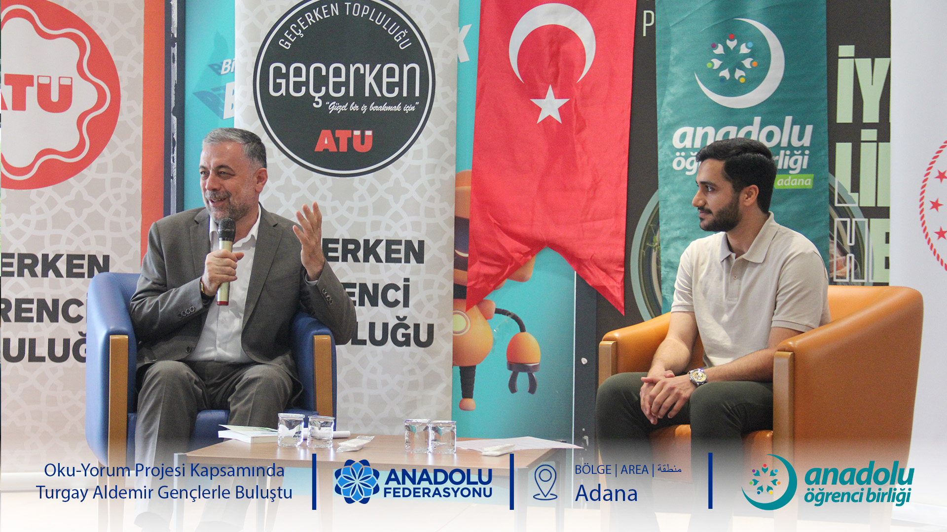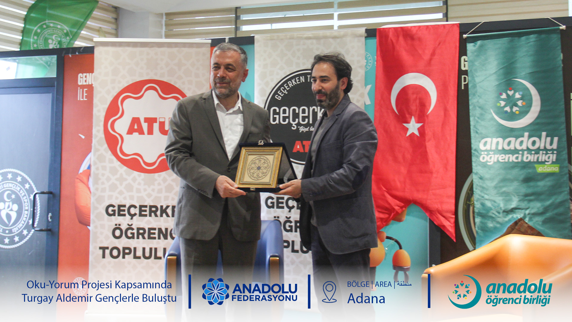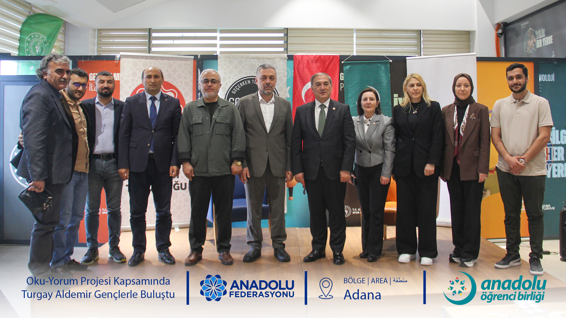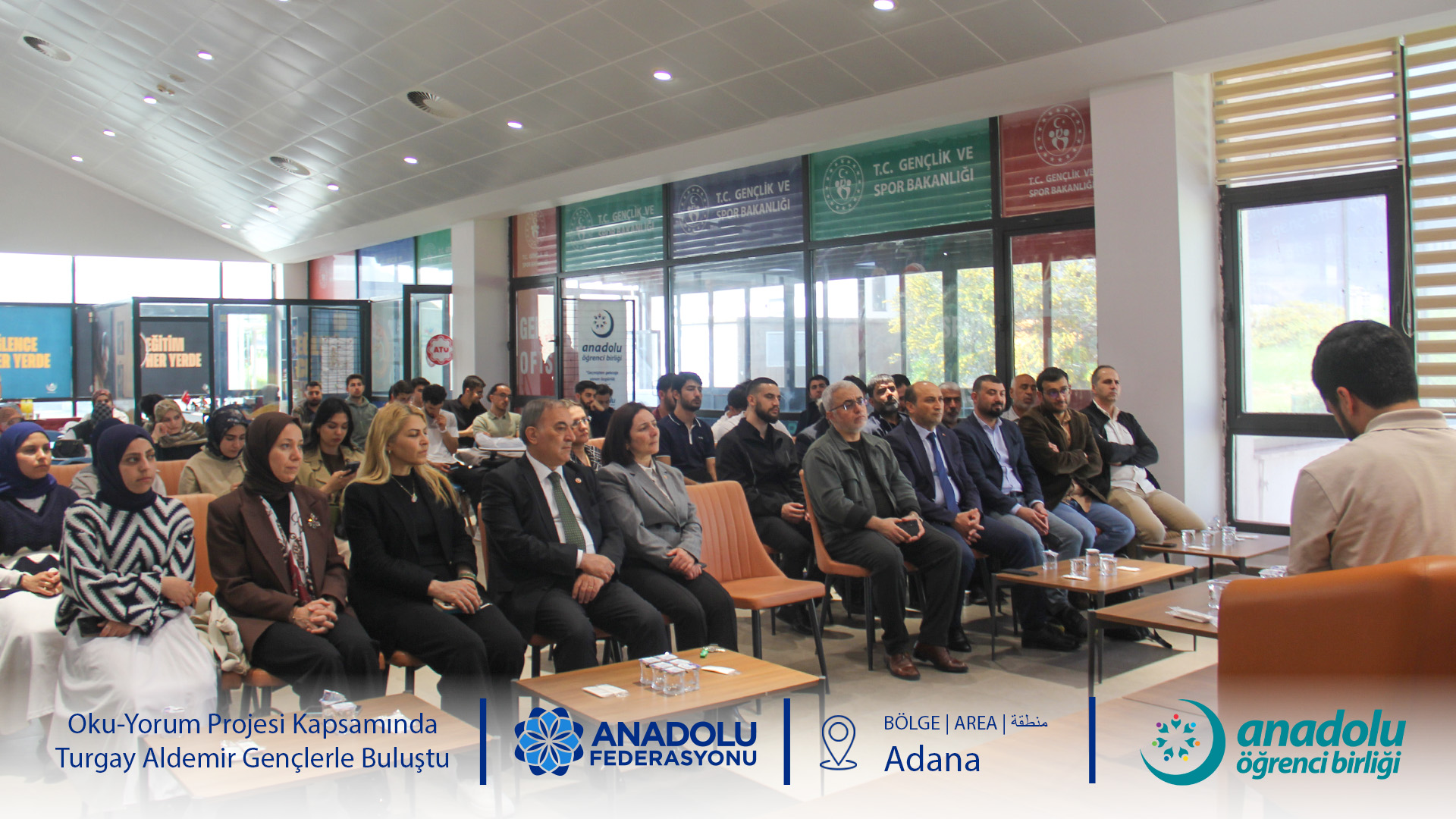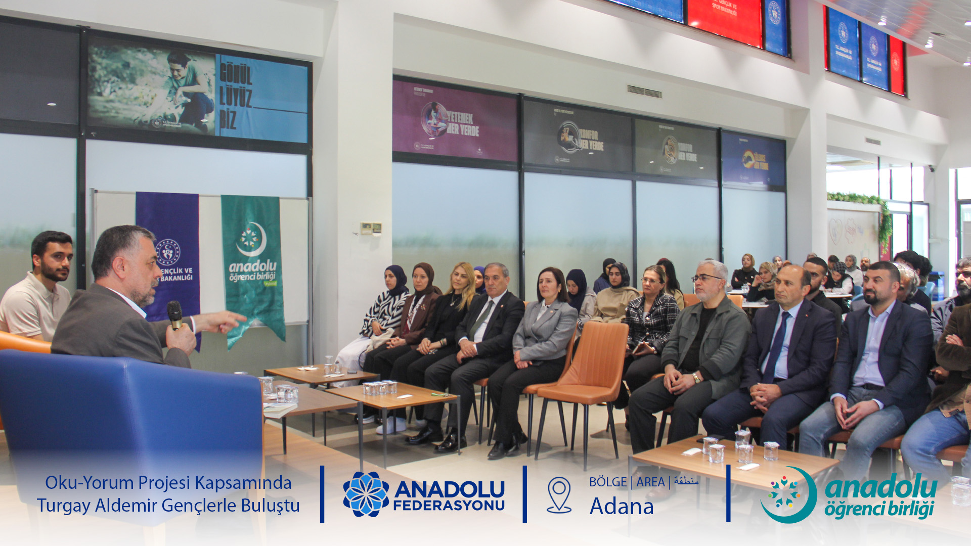 Anadolu Öğrenci Birliği'nin gelenekselleşen ve büyük ilgi gören Oku-Yorum Projesi, "Okur-Yazar Buluşmaları" başlığıyla gençleri kıymetli isimlerle buluşturmaya devam ediyor. Bu kapsamda Adana Alparslan Türkeş Bilim ve Teknoloji Üniversitesi Genç Ofis ev sahipliğinde düzenlenen programda, Anadolu Federasyonu Yönetim Kurulu Başkanı ve Yazar Turgay Aldemir öğrencilerle bir araya geldi.