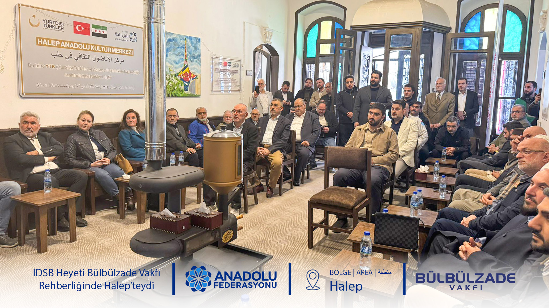 Halep Anadolu Kültür Merkezi’nde heyete hitap eden Anadolu Federasyonu Yönetim Kurulu Başkanı Turgay Aldemir, bölgedeki mevcut tabloyu ve vakfın stratejik vizyonunu paylaştı. Suriye’nin sadece fiziksel binalarla ayağa kalkamayacağını belirten Aldemir, toplumsal iyileşmenin ancak eğitim ve kültürle mümkün olduğunu vurguladı. Bülbülzade Vakfı’nın Suriye genelinde üstlendiği öncü role dikkat çeken Aldemir, insani diplomasinin sahadaki karşılığının yerel halkla kurulan güven ilişkisi olduğunu ifade etti.