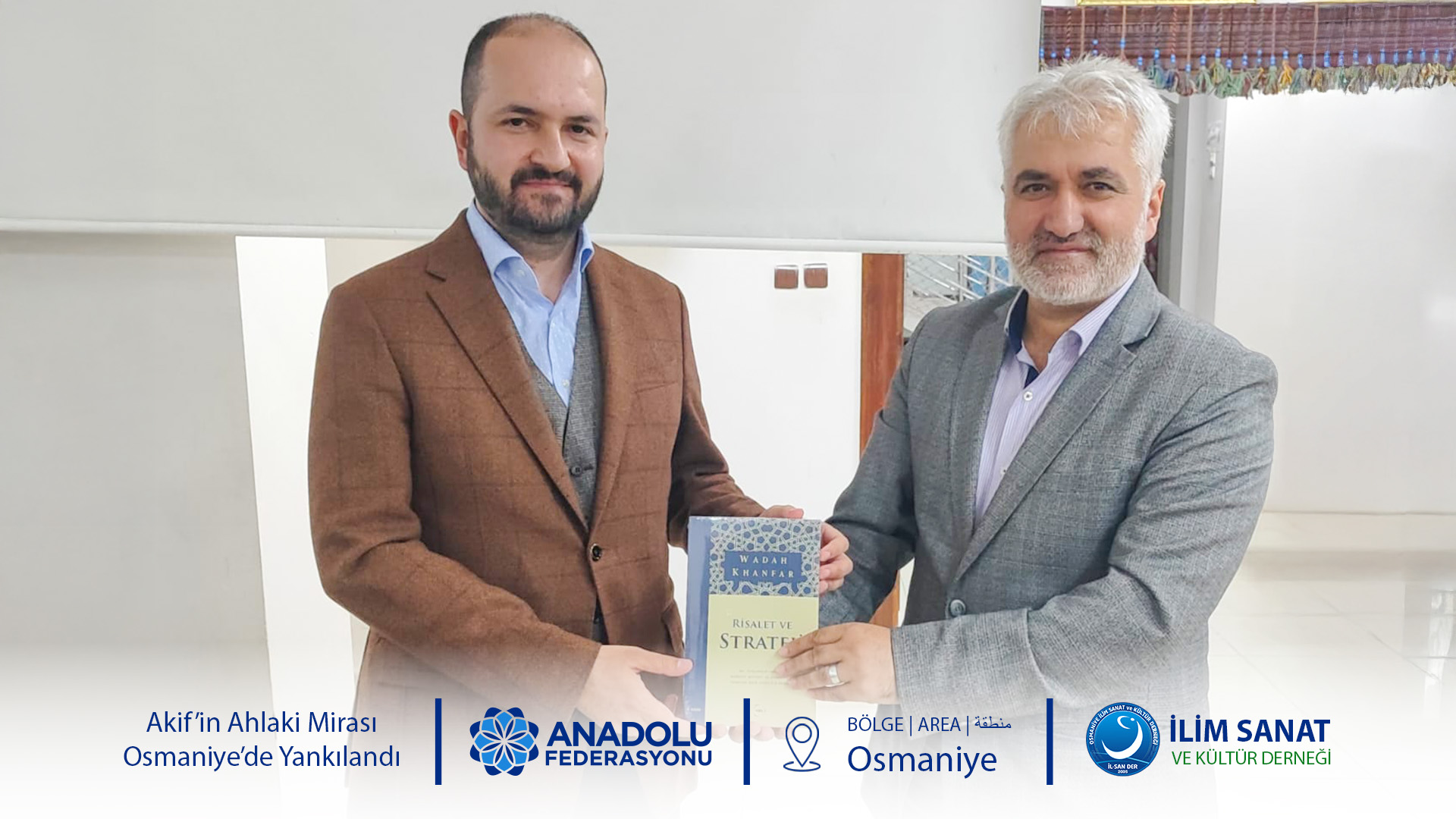 Anadolu Federasyonu bünyesinde çalışmalar yapan Osmaniye İlim Sanat ve Kültür Derneği, Nisan ayı konferansları çerçevesinde milli şairimiz Mehmet Akif Ersoy’u anlamlı bir programla andı. “Bir Dava Adamı: Mehmet Akif Ersoy” başlığını taşıyan etkinlikte, İstiklal Şairimizin hayatı boyunca sergilediği sarsılmaz karakteri ve topluma örnek olan duruşu mercek altına alındı. Sivas Cumhuriyet Üniversitesi Öğretim Üyesi Doç. Dr. Mustafa Sefa Çakır, Akif’in 1909 yılından itibaren tarih sahnesinde üstlendiği kritik rolleri ve ahlaki değerlerini katılımcılarla paylaştı.