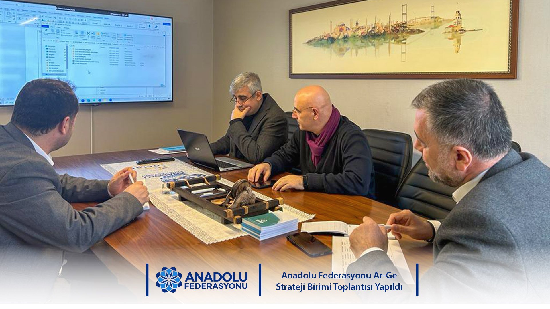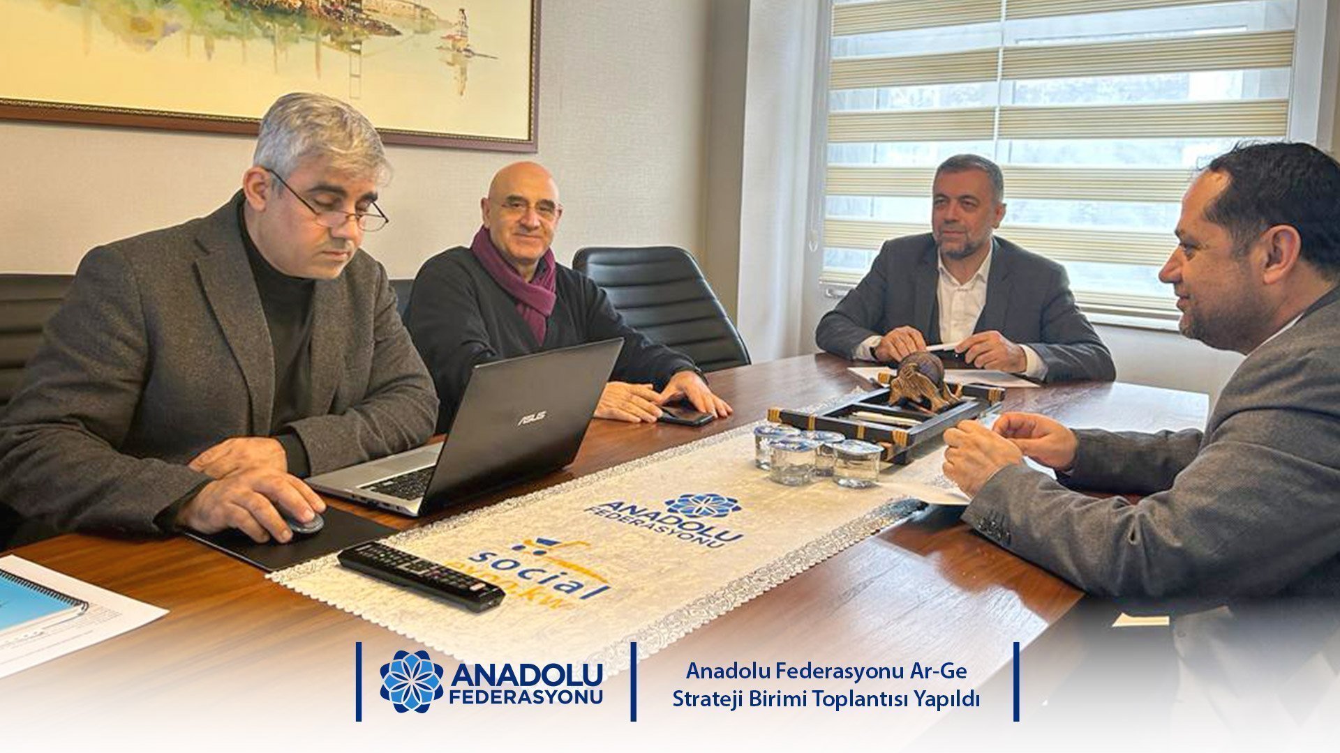 Anadolu Federasyonu Ar-Ge Strateji Birimi Toplantısı, Anadolu Federasyonu Genel Merkezinde yapıldı. Toplantıda Deprem sonrası Anadolu Federasyonu stratejik çerçeve programında yapılacak güncellemeler değerlendirildi ve Anadolu Federasyonu politika belgelerinin değerlendirilmesi yapıldı.Anadolu Federasyonu hizmet tablosu oluşturuldu, faaliyet ve stratejilerdeki verimi artıracak çalışmanın taslağı oluşturuldu.