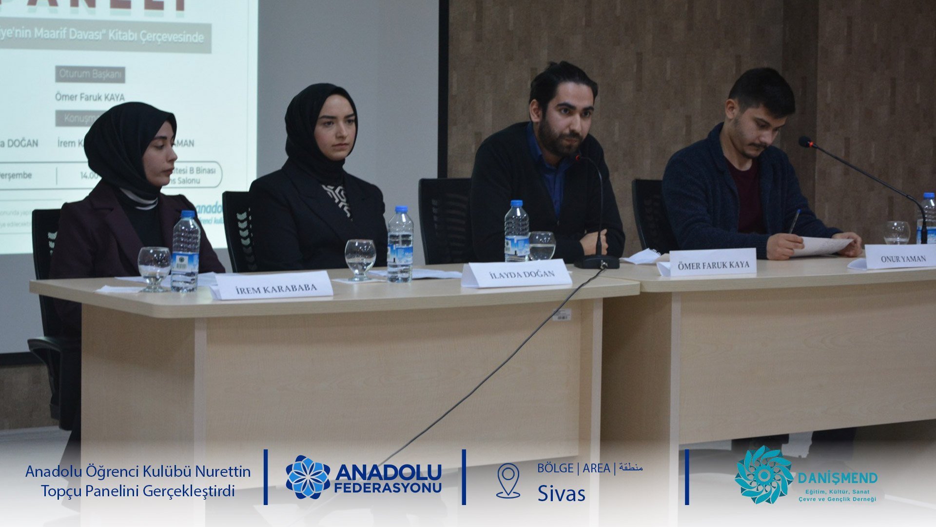 Sivas Cumhuriyet Üniversitesi öğrencilerinin konuşmacı olarak katıldığı panelde, Türkiye'nin yetiştirdiği önemli fikir adamlarından Nurettin Topçu'nun hayatı, eserleri ve düşünceleri ele alındı. Özellikle Topçu'nun "Türkiye'nin Maarif Davası" kitabı üzerinden eğitimle ilgili konular tartışıldı.