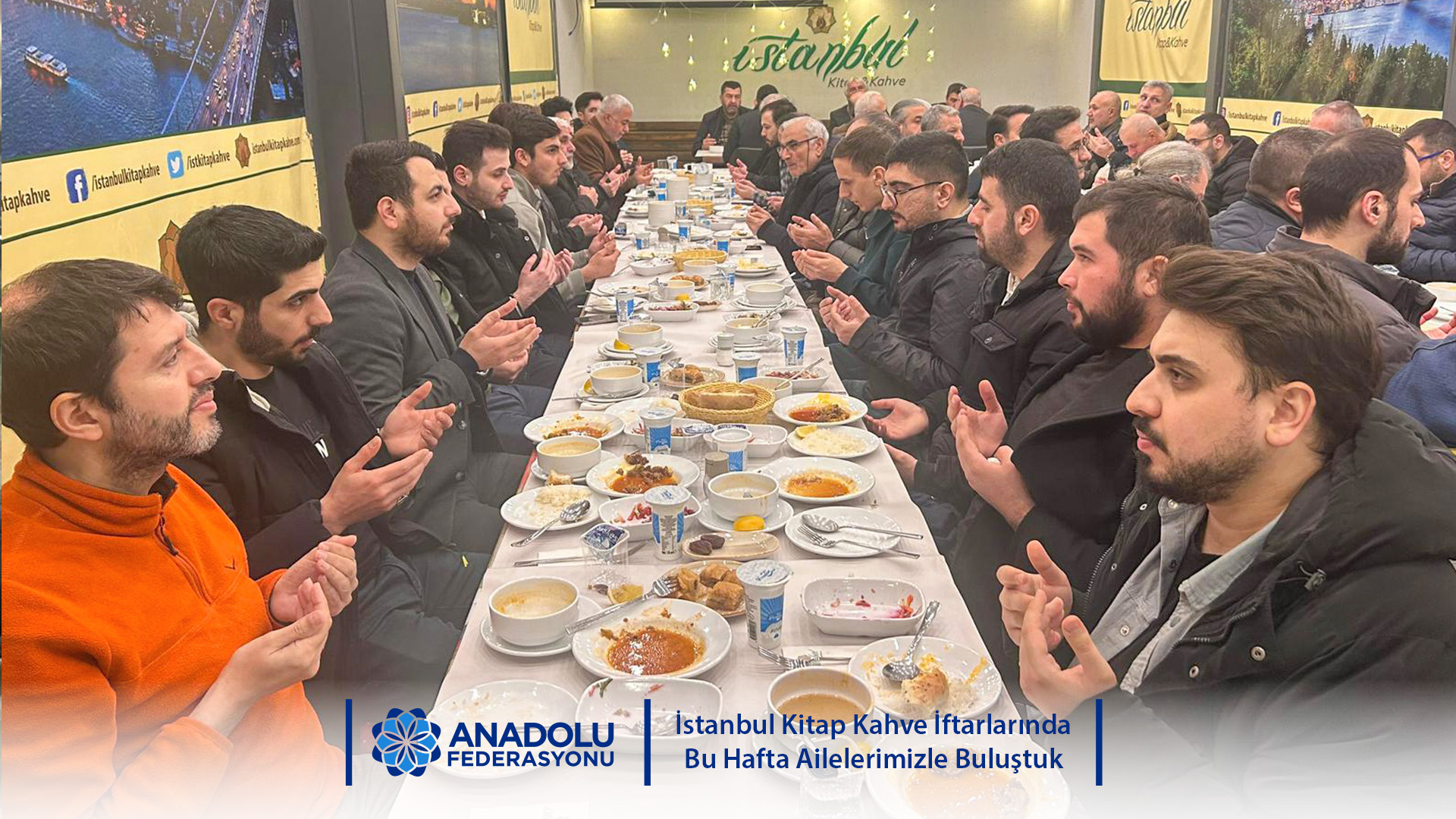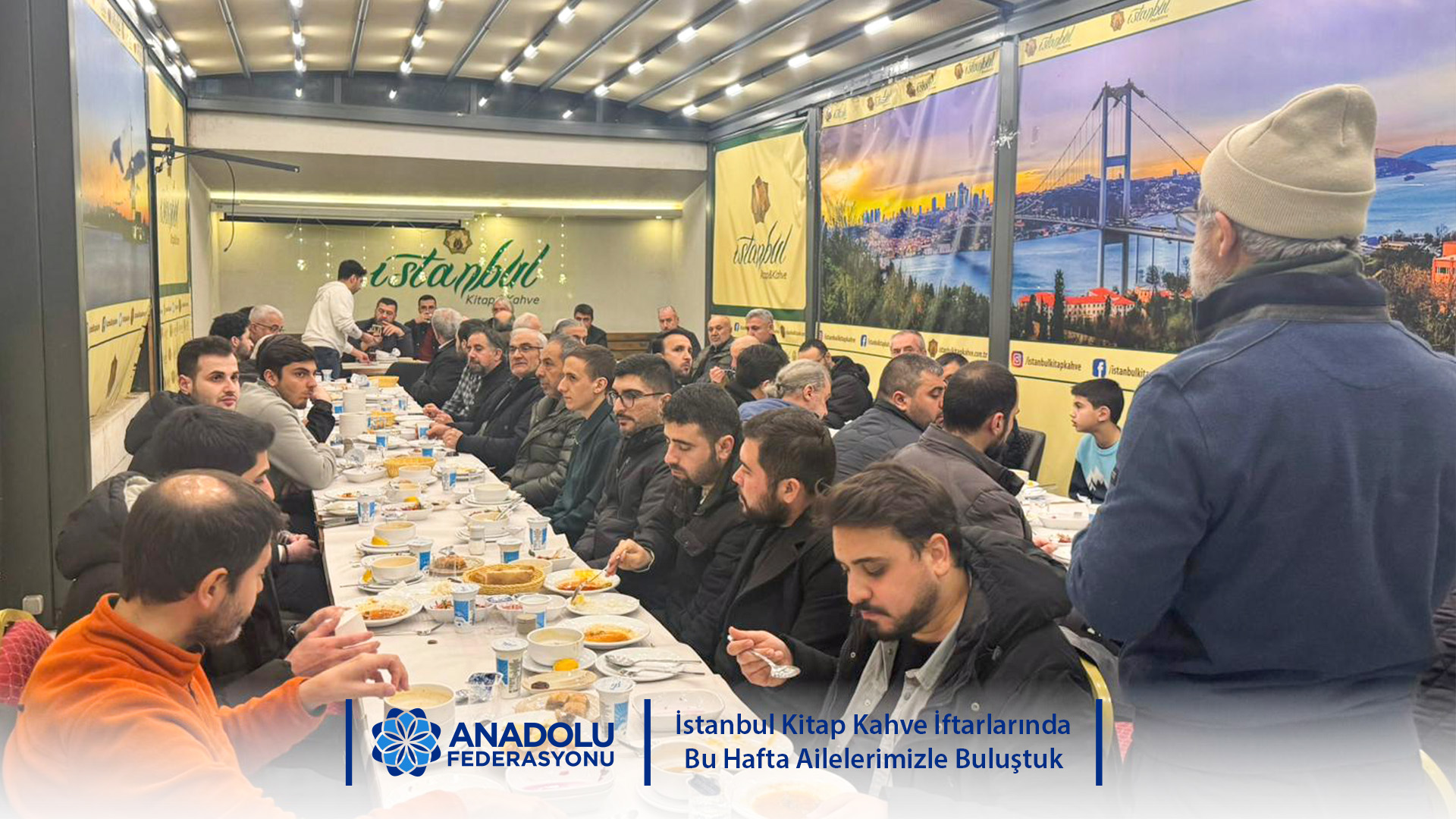 Anadolu Federasyonu bünyesinde her gün gerçekleştirdiğimiz "İstanbul Kitap Kahve İftarları" programımız, Ramazan ayının manevi iklimini gönül sofralarımızda taçlandırmaya devam ediyor. Her akşam farklı bir grupla paylaştığımız bu bereketli sofrada, 25 Şubat Çarşamba akşamı ailelerimizi ve gönüllülerimizi ağırladık.