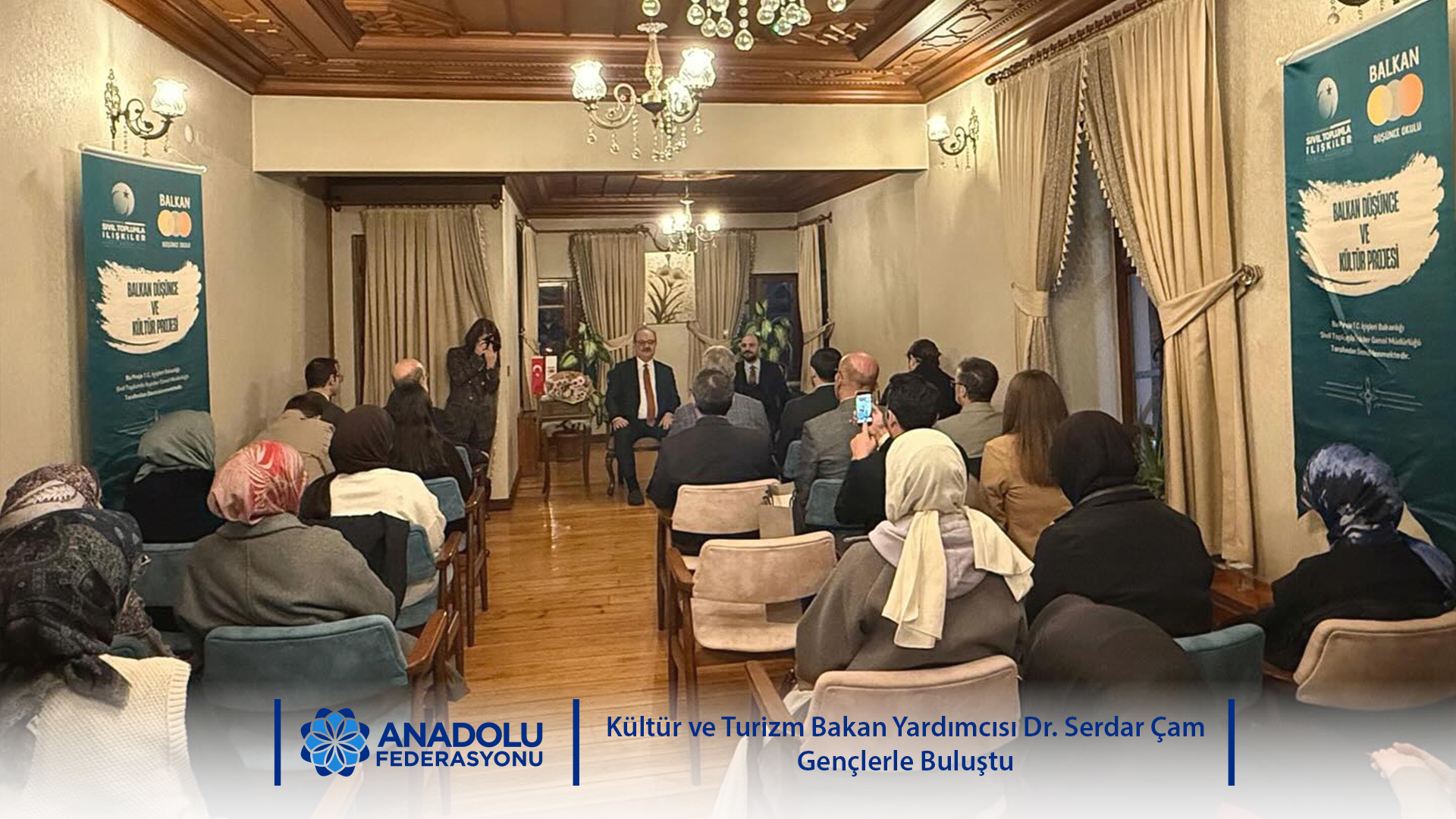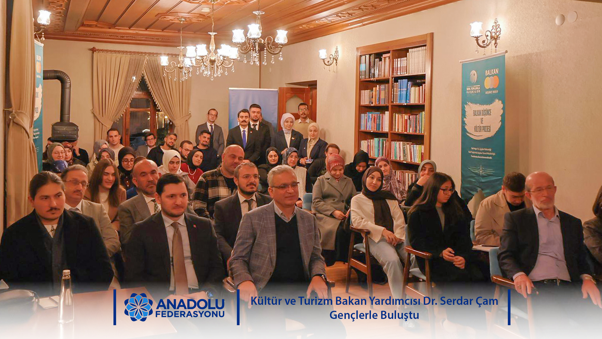 Anadolu Federasyonu Ankara Ofisi’nde 3 Aralık Çarşamba günü T.C. Kültür ve Turizm Bakan Yardımcısı Dr. Serdar Çam’ın katılımı ile “Balkan Düşünce ve Kültür Projesi” kapsamında öğrenciler ve akademisyenlerle “Dünü, Bugünü ve Yarınıyla Balkanlar” başlıklı bir konferans gerçekleştirildi.