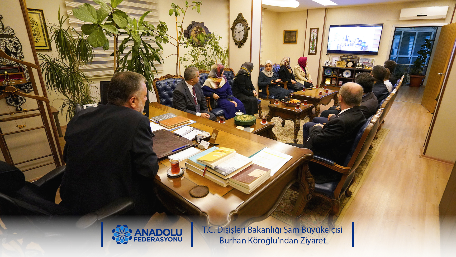 T.C. Dışişleri Bakanlığı Şam Büyükelçisi Burhan Köroğlu ve Cumhurbaşkanlığı Güvenlik ve Dış Politikalar Kurulu Üyesi Prof. Dr. Muhittin Ataman, Bülbülzade Vakfı’nı ziyaret etti. Ziyaret kapsamında Anadolu Federasyonu Başkanı Turgay Aldemir, Bülbülzade Vakfı yönetimi ve teşkilat mensuplarıyla bir araya geldi.