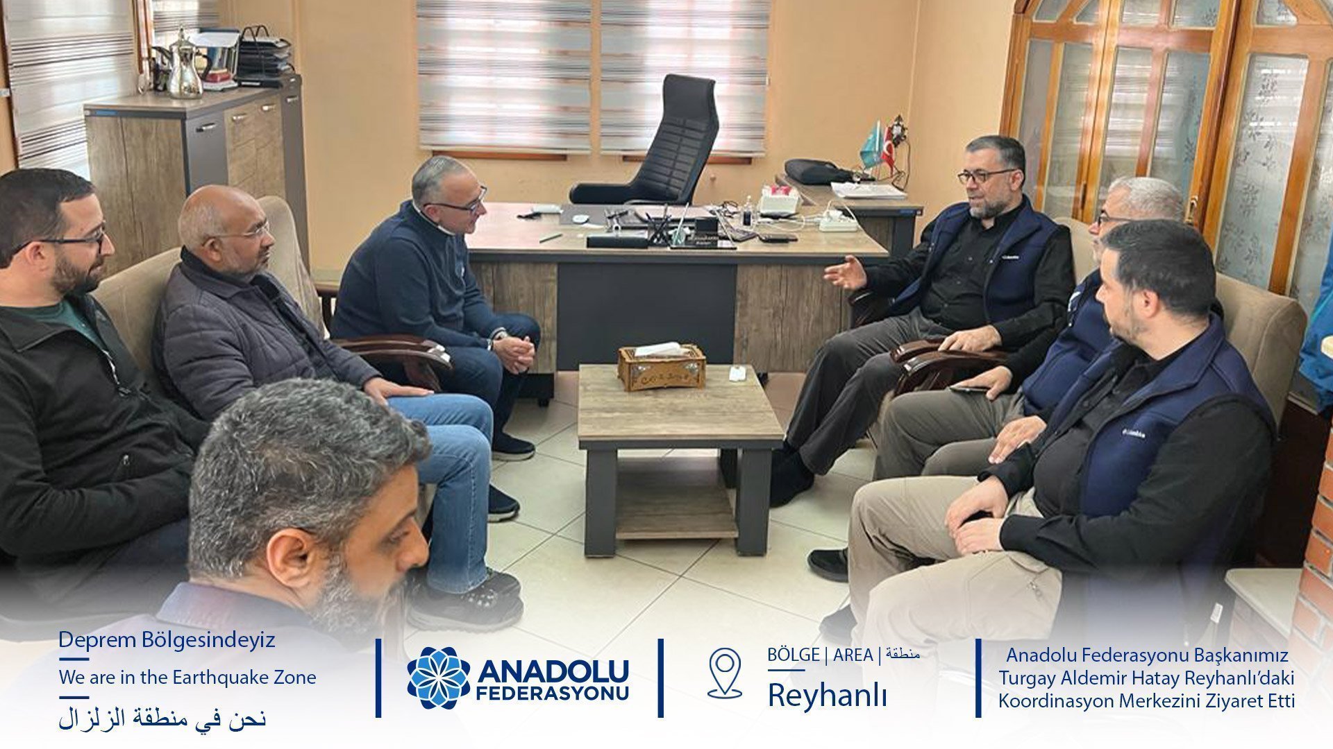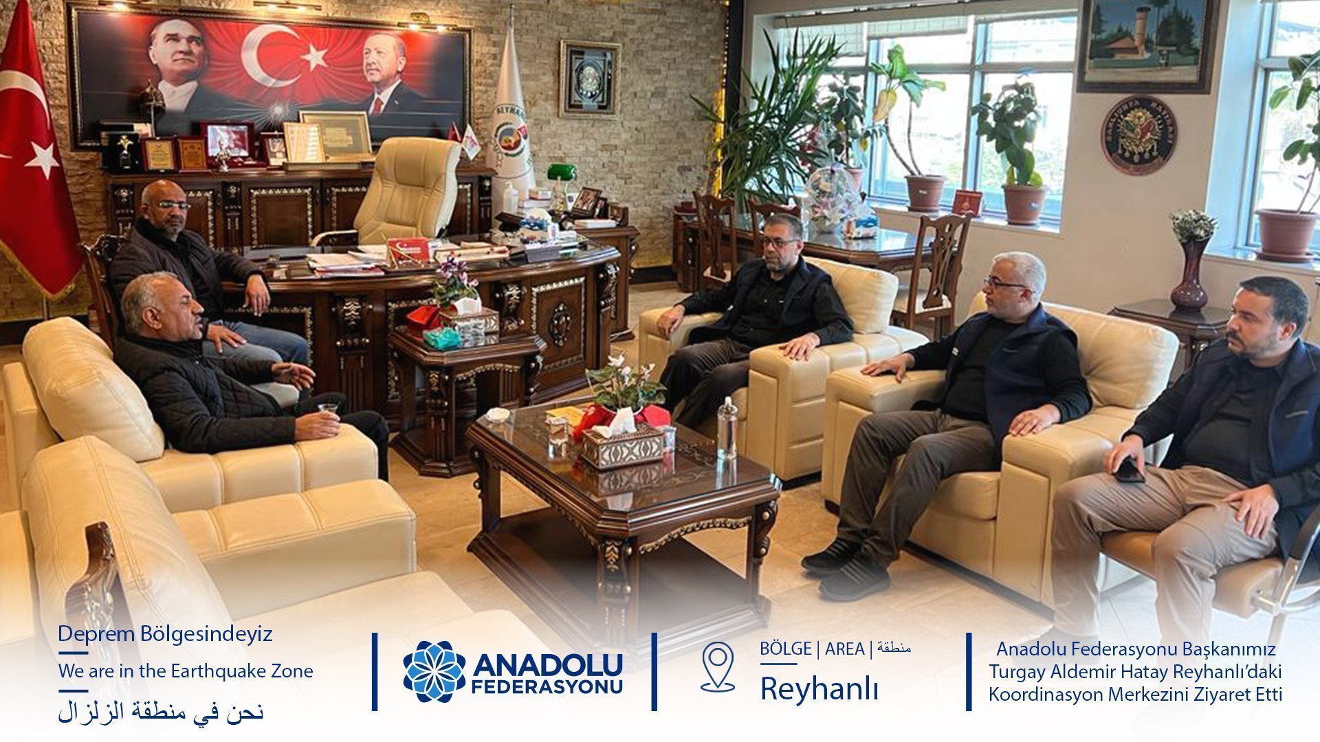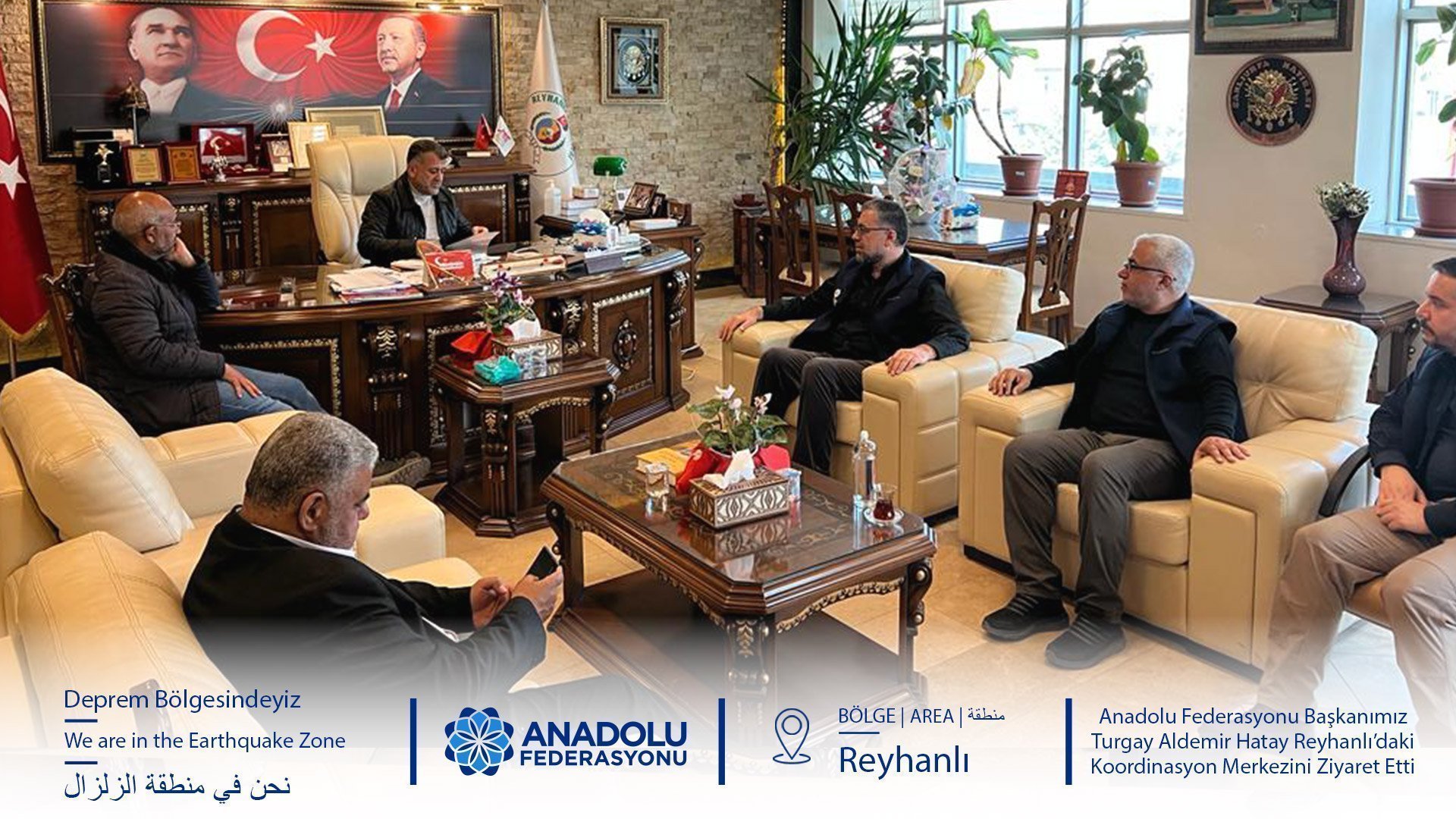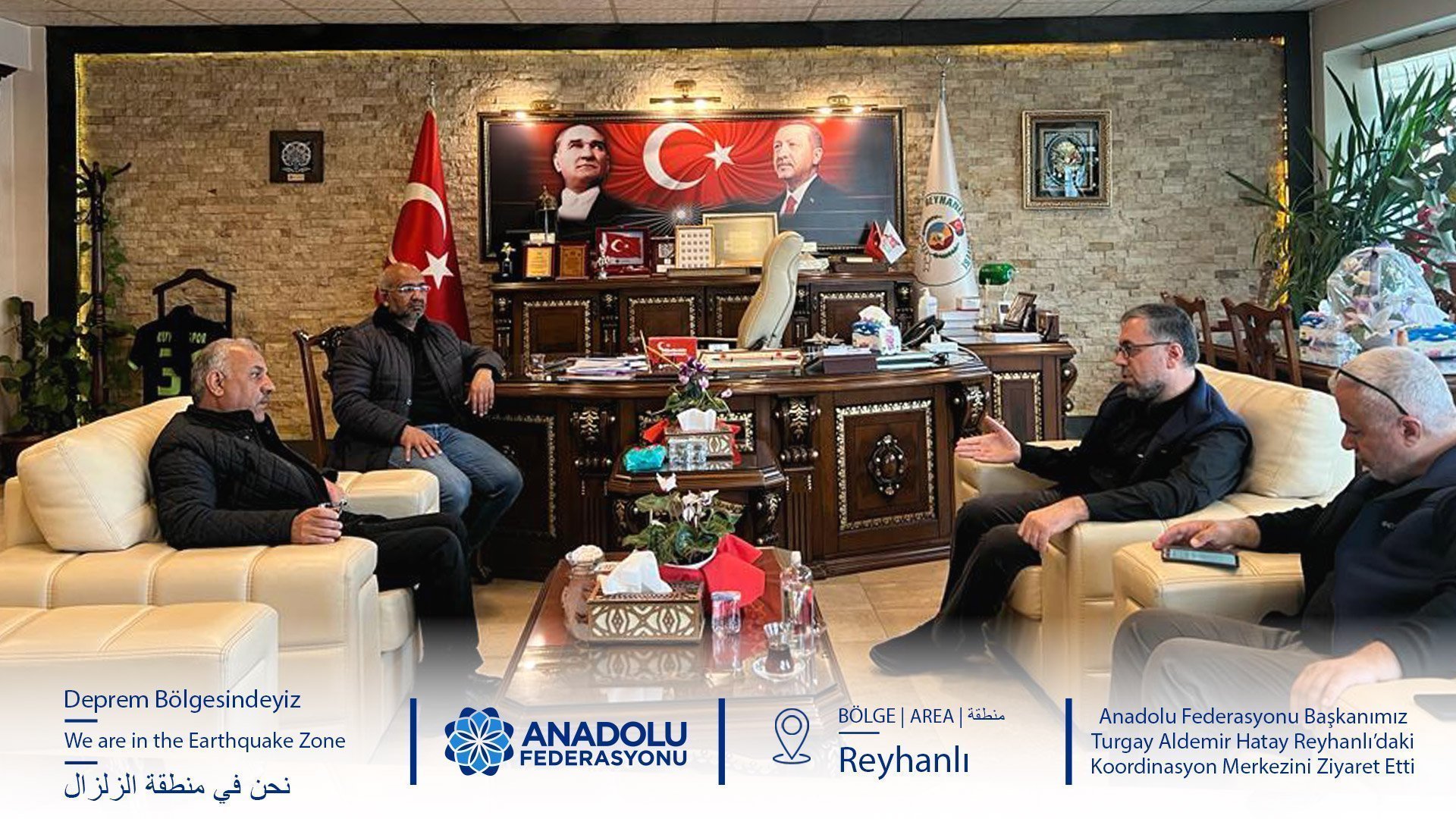 Anadolu Federasyonu Başkanımız Turgay Aldemir ve beraberindeki heyet Hatay Reyhanlı’daki Afet Koordinasyon Merkezini ziyaret etti.