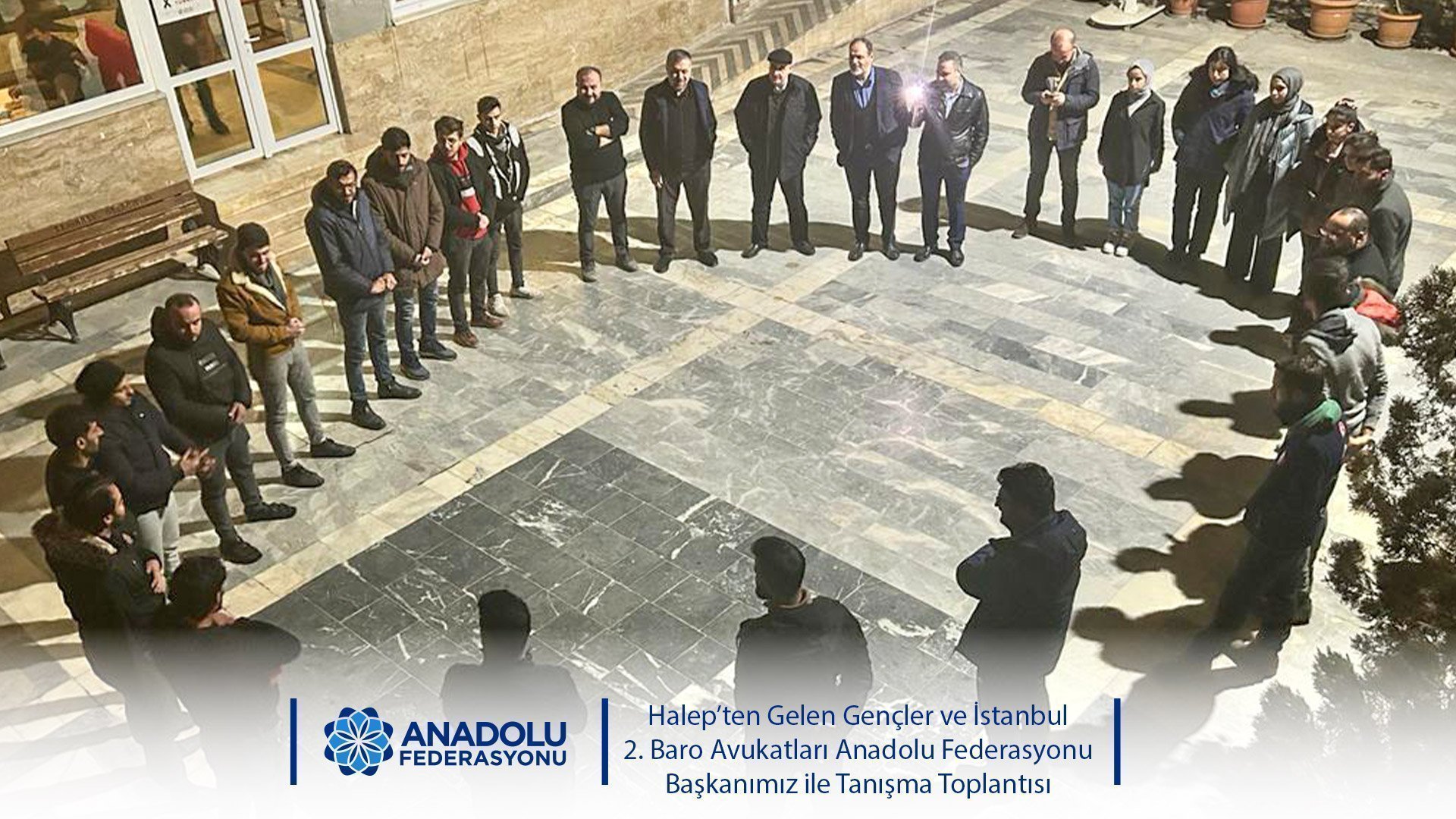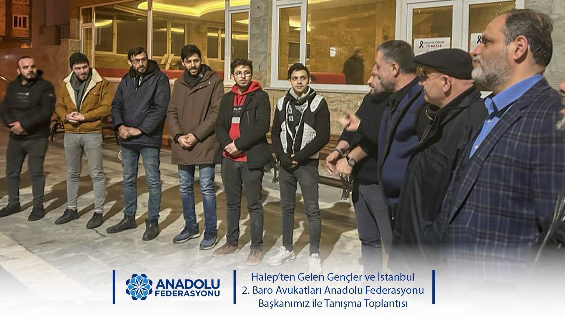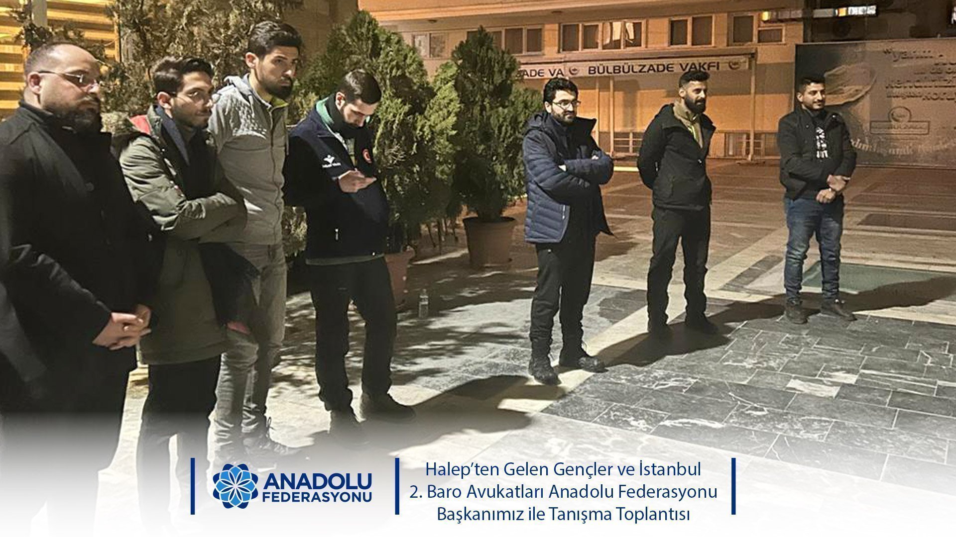 Halep’ten gelen gençler ve İstanbul 2. Baro avukatları, Anadolu Federasyonu Yönetim Kurulu Başkanımız Turgay Aldemir’i ve Bülbülzade Vakfı Yardım koordinasyon ekibi ile tanışma toplantısı düzenlendi.