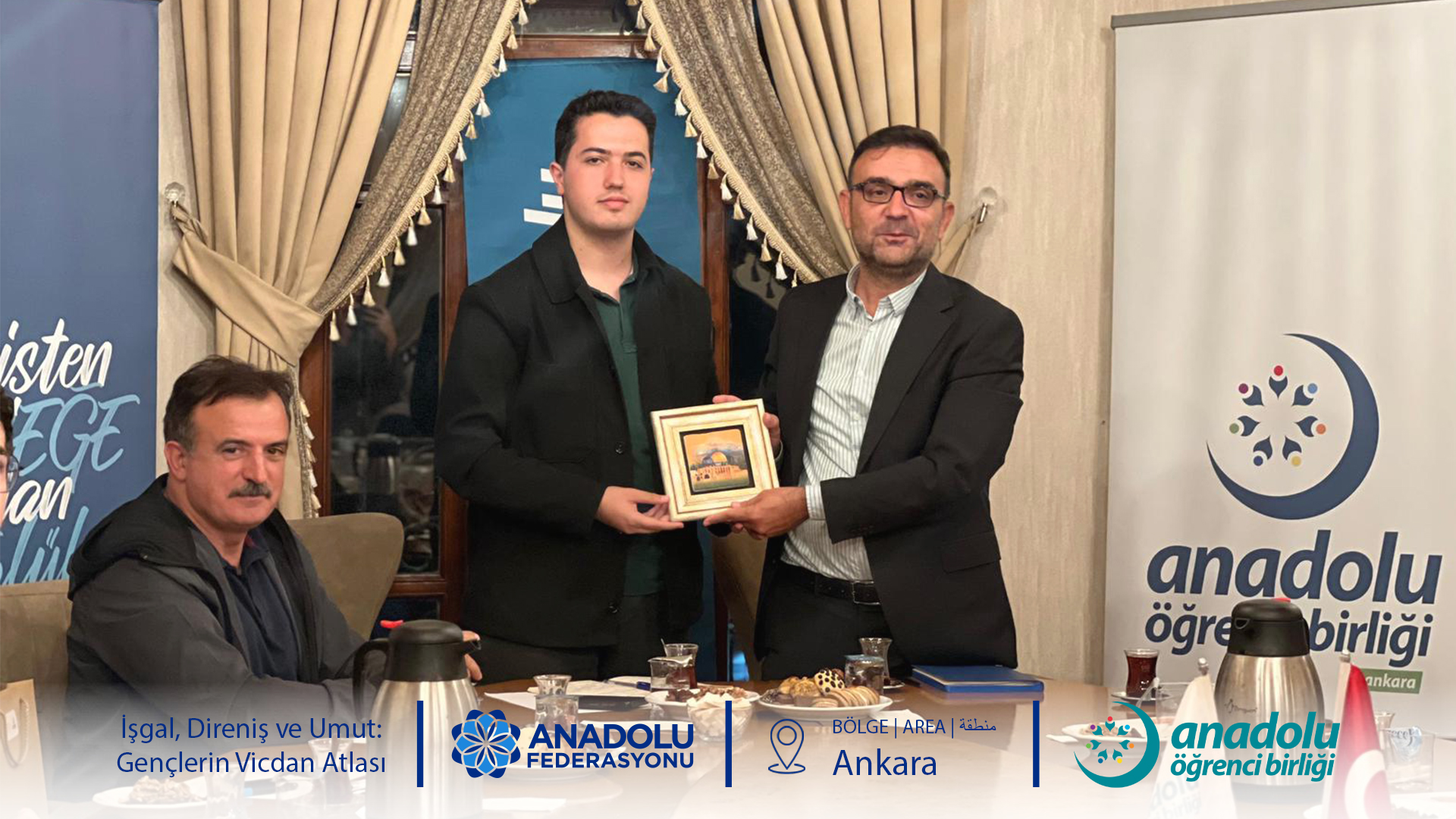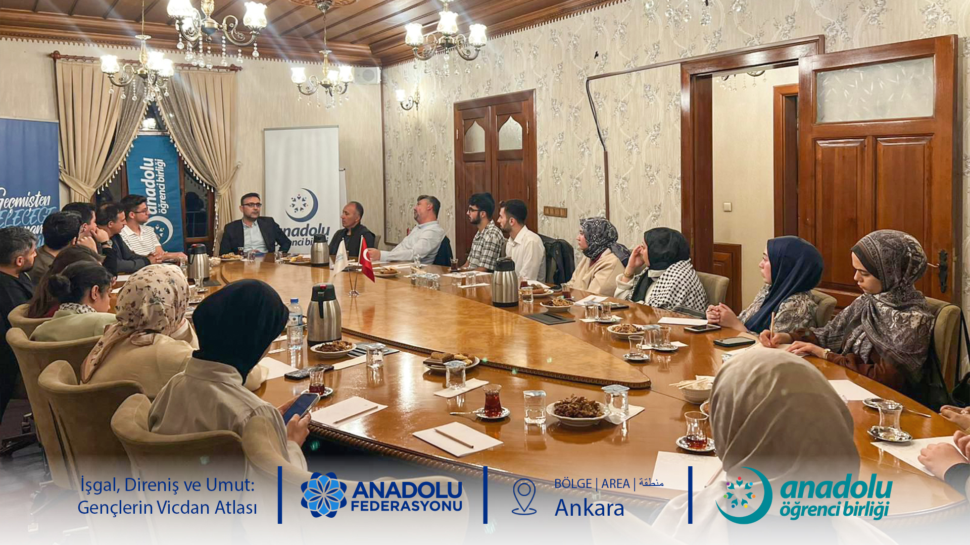 AÖB (Anadolu Öğrenci Birliği) Ankara Temsilciliği 7 Ekim Salı günü Müzakere Masası programı kapsamında “İşgal, Direniş ve Umut: Gençlerin Vicdan Atlası” üst başlığıyla bir buluşma düzenledi.