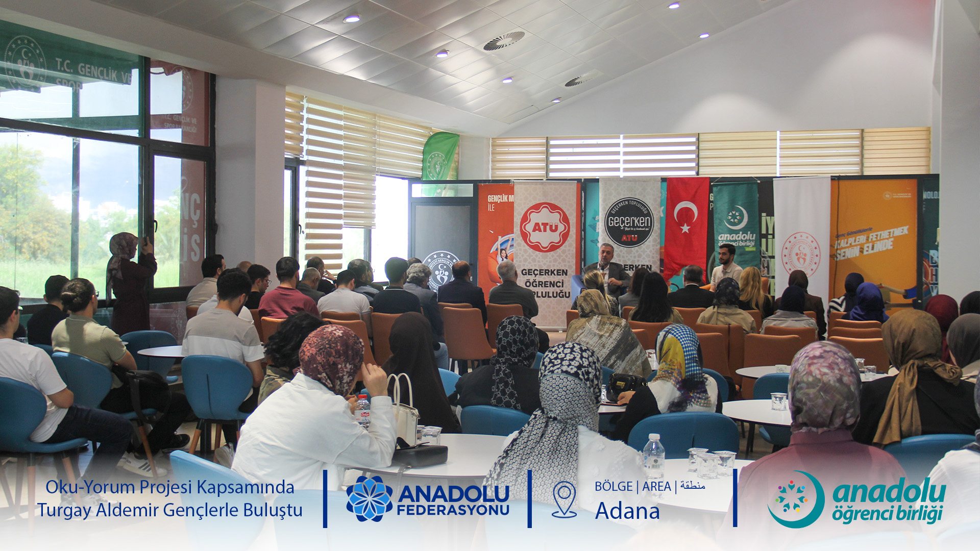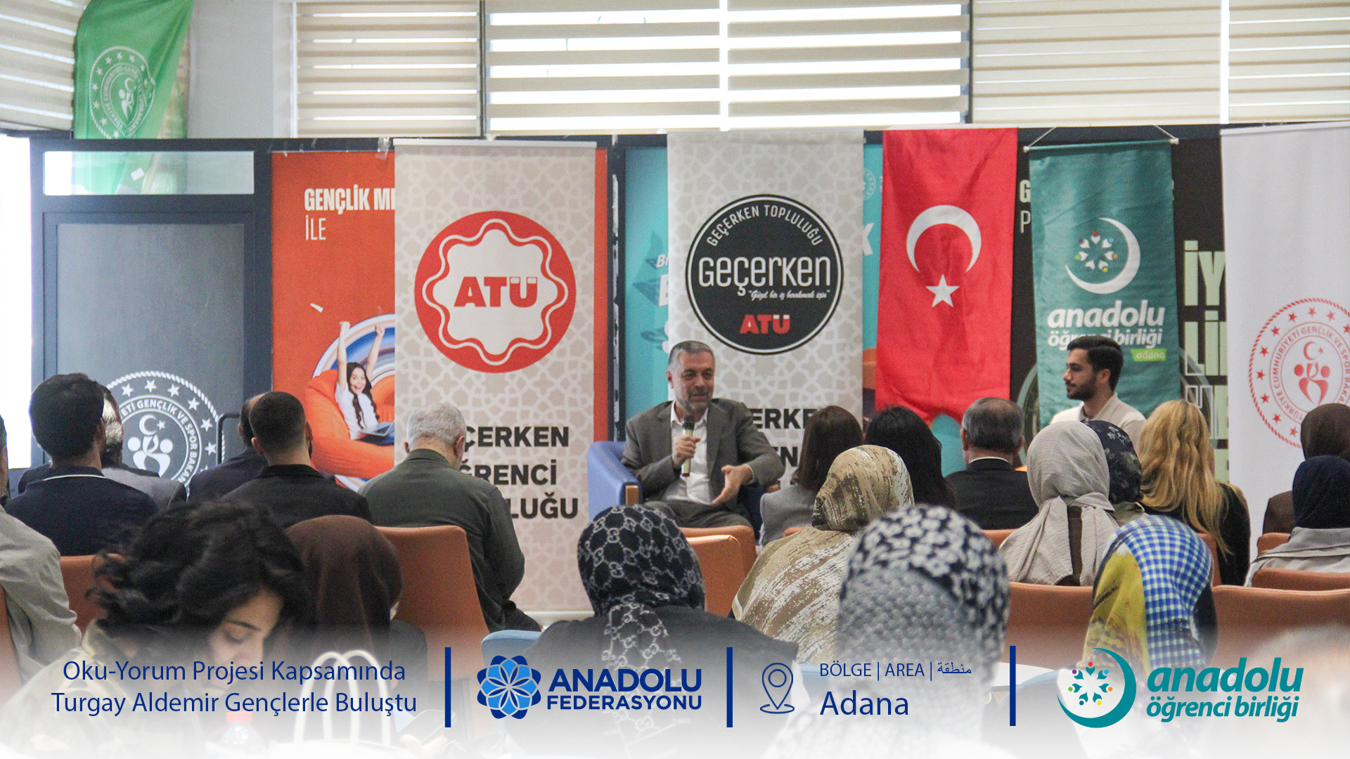 Anadolu Öğrenci Birliği'nin gelenekselleşen ve büyük ilgi gören Oku-Yorum Projesi, "Okur-Yazar Buluşmaları" başlığıyla gençleri kıymetli isimlerle buluşturmaya devam ediyor. Bu kapsamda Adana Alparslan Türkeş Bilim ve Teknoloji Üniversitesi Genç Ofis ev sahipliğinde düzenlenen programda, Anadolu Federasyonu Yönetim Kurulu Başkanı ve Yazar Turgay Aldemir öğrencilerle bir araya geldi.